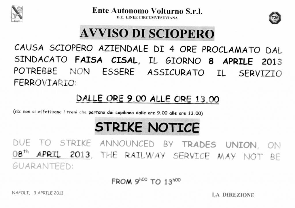 LO SCIOPERO DI LUNEDI' 8 APRILE 2013